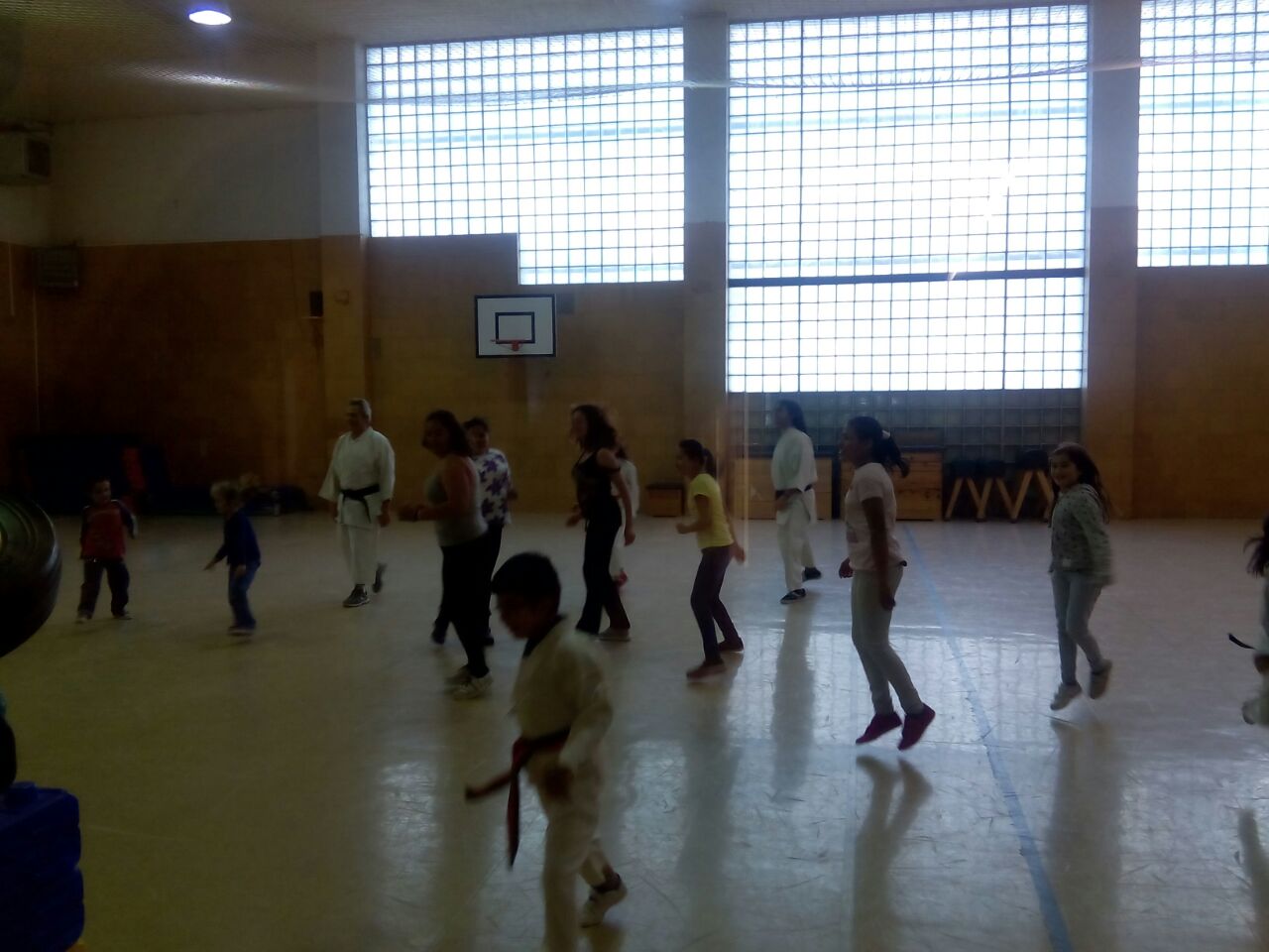 Goyo y sus alumnos de karate, en el gimnasio del colegio han demostrado a niños y mayores todas sus habilidades.