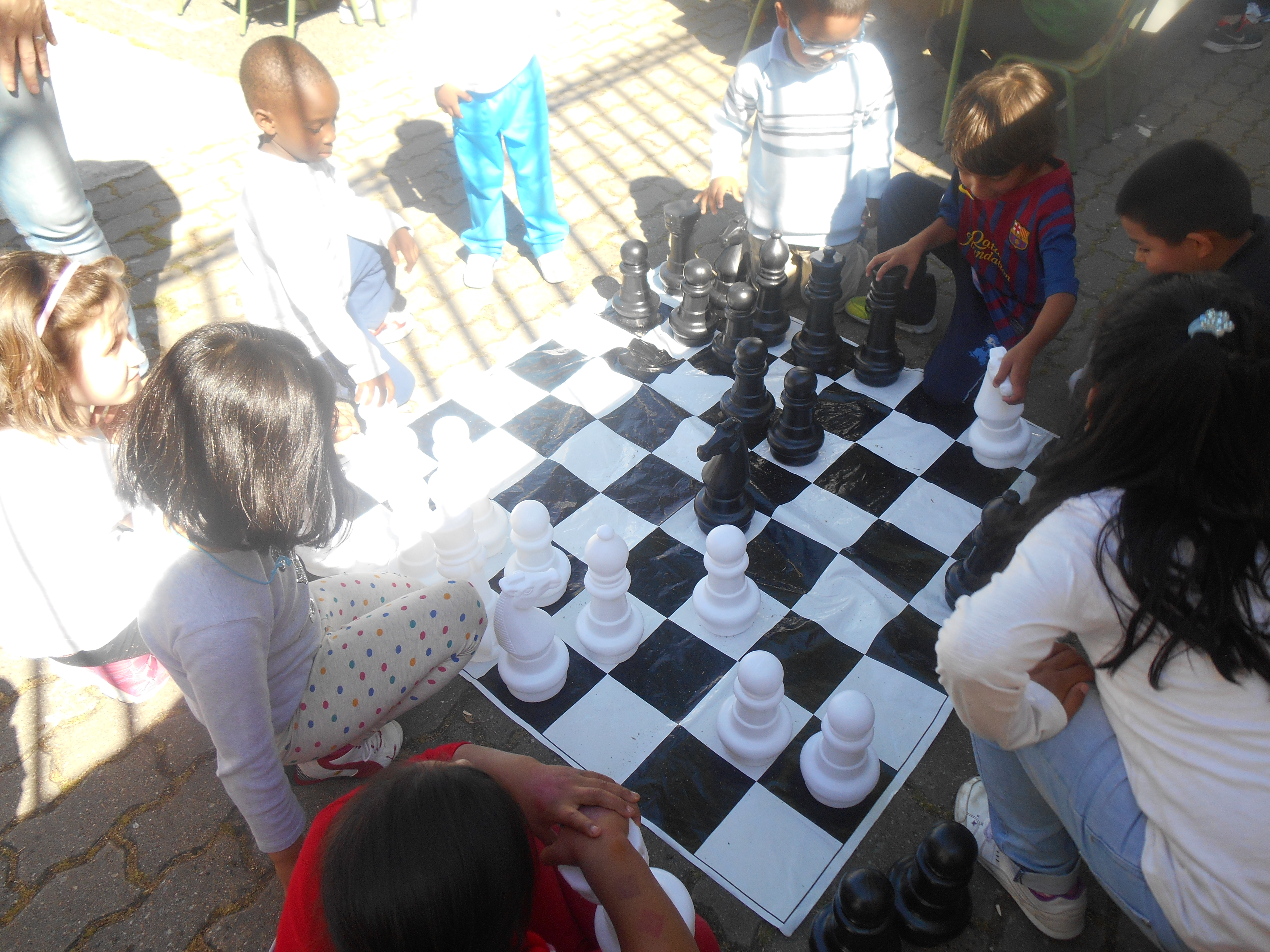 Aprovechando que por fin ha salido el sol, el profesor de la extraescolar de Ajedrez ha montado un campeonato en el patio de Teobaldos con el que han disfrutado alumnos de todas las edades, los más pequeños con un tablero de suelo.