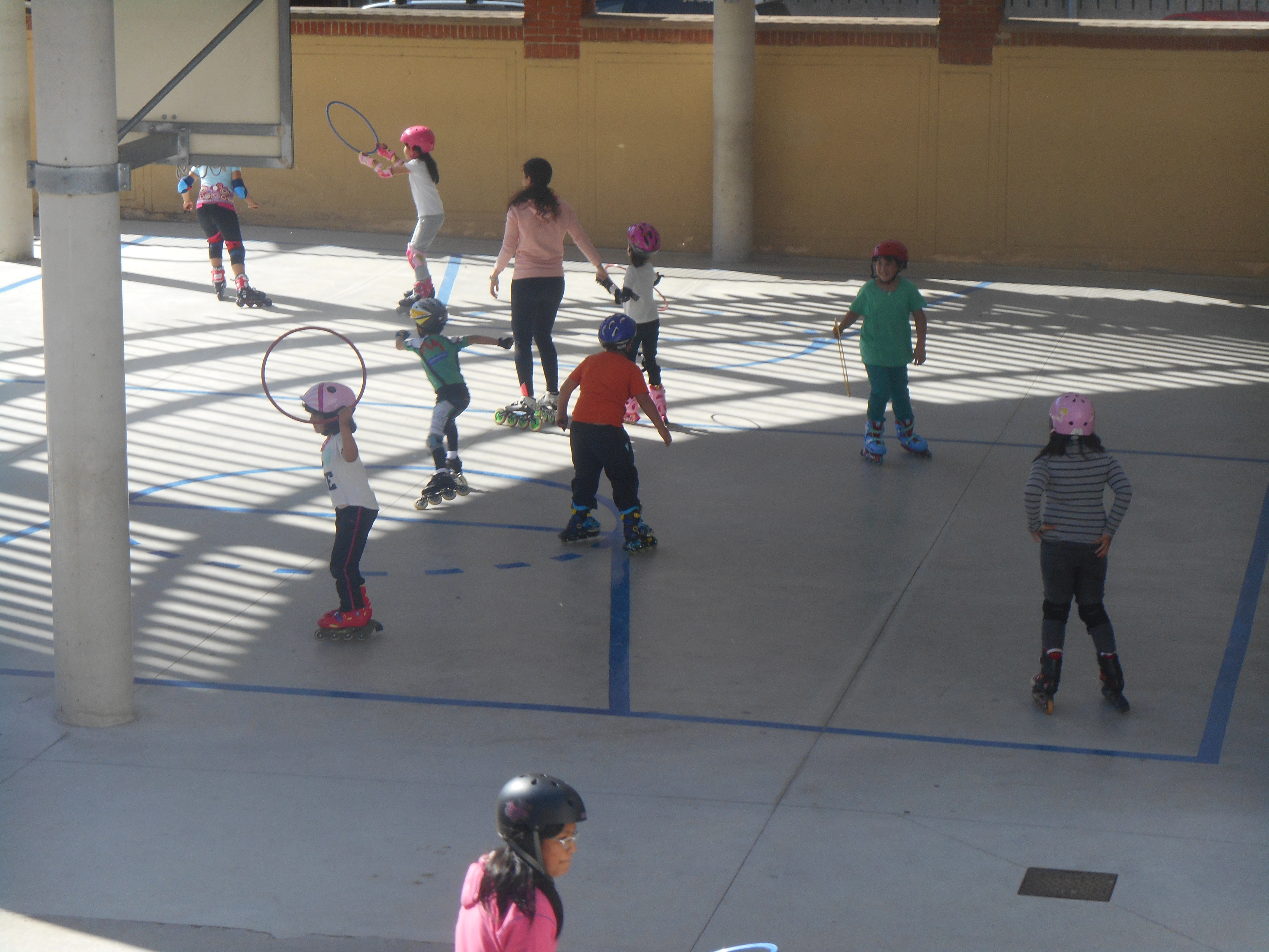 Y en el patio de la calle Olite las monitoras de patinaje han organizado actividades sobre ruedas.