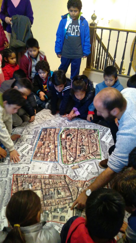 3º de Primaria está que no para y además tenemos una reportera infiltrada así que tenemos noticias frescas, fresquísimas para el blog. Hoy los alumnos de 3º han visitado el Ayuntamiento, donde no solo se puede ver el balcón desde el que se tira el Chupinazo de San Fermín, nooo, también se puede conocer un poco de historia de la ciudad. Resulta que Pamplona no ha sido siempre así, hace muchos años tres Burgos convivían a duras penas separados por murallas. Navarrería, San Cernín y San Nicolás andaban un poco peleadillos hasta que un tal Carlos III decidió que ya bastaba, tiró las murallas y les obligó a convivir y entenderse. El buen hombre ahora tiene una calle muy importante en su honor, claro, es que poner paz tiene su mérito.