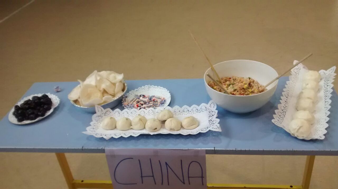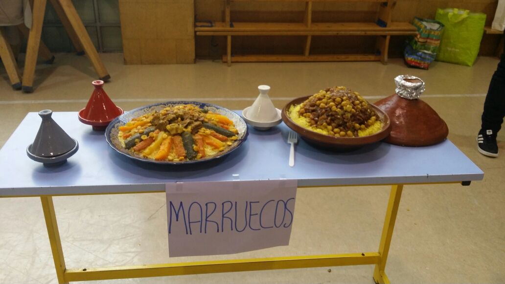 las familias del centro. El gimnasio se convirtió en un trocito de mundo con la degustación que muchas familias prepararon con todo su cariño para que todos pudiéramos probar los platos más típicos de sus países.