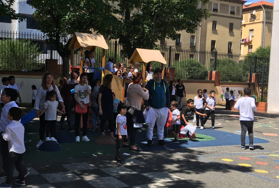 Pero esto no ha sido todo, tras las actuaciones hemos recuperado fuerzas con un buen almuerzo en compañía de nuestras familias, y cuando pensábamos que ya no había más sorpresas tres miuras de cartón piedra hicieron acto de presencia en el patio lanzando chorros de agua y provocando intrépidas carreras…y que los columpios se convirtieran en improvisado burladero.