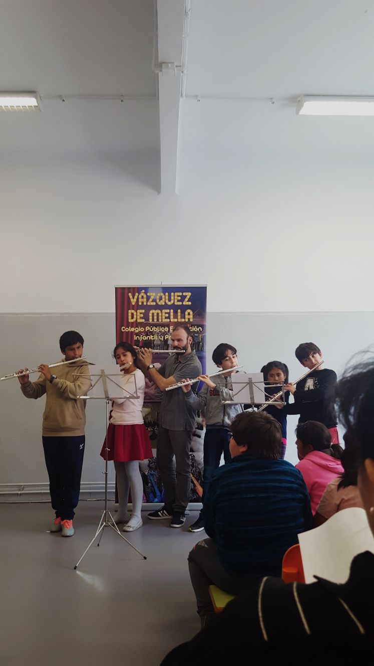 Sí, ya os habíamos avisado de que esta semana venía cargadita de acontecimientos y hoy jueves hemos podido disfrutar de un nuevo monográfico, el de flauta, de la mano de Jesús Figols. Siempre es una maravilla escuchar a nuestros niños flautistas y este año han venido con un programa muy variado. Se ve que a los alumnos de flauta les encanta tocar juntos y hemos podido disfrutar de unas cuantas interpretaciones en grupo, Ahí estaba Jesús acompañando a sus niños, y qué decir…han puesto el listón muy alto.